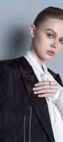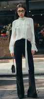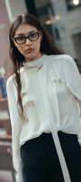 Expertly crafted with crepe de chine fabric, this shirt exudes elegance and sophistication. Designed with blouson poet sleeves, this shirt adds a touch of glamour to any outfit. Made for comfort and style, it's the perfect addition to your wardrobe.