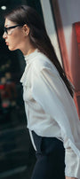 Santa Blouson Poet Sleeved Crepe De Chine Shirt
