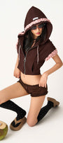 Sweetchoco Cropped Short Sleeved Fleece Jacket