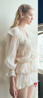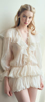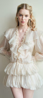Ruffle collar and skirt, Ruffle trim on the neck with string, Bubble layer skirt