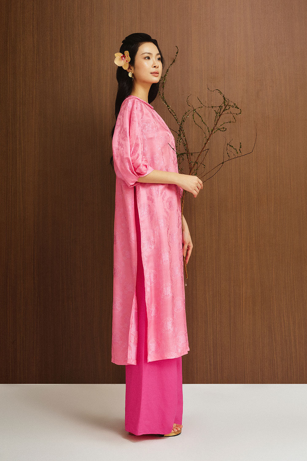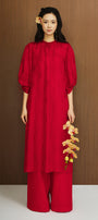 The straight puffy sleeves add a touch of sophistication to this traditional Vietnamese outfit, perfect for any formal event or special occasion. Made with luxurious silk, you'll feel comfortable and chic all day long.
