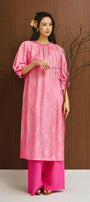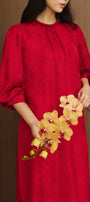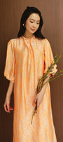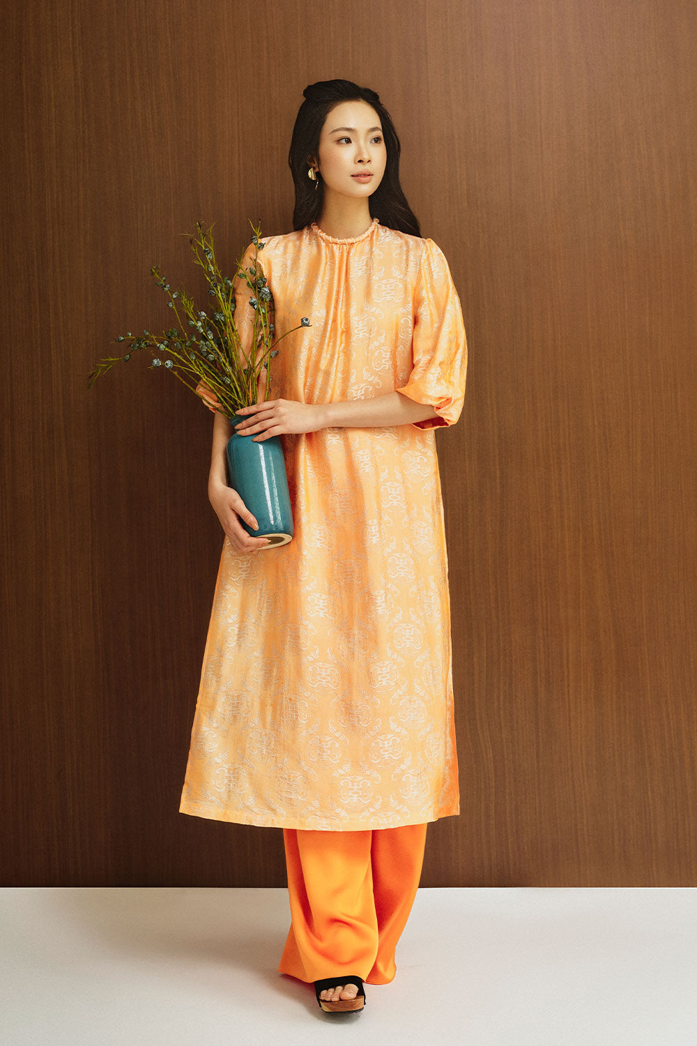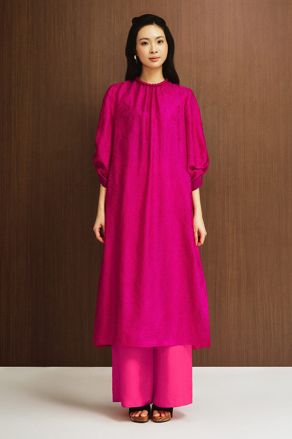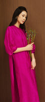 Giai Ky Straight Puffy Sleeved Silk Calf Length Ao Dai