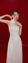 Yen Ngoc A-line Sleeveless Mesh Sequin Floor Length Ao Dai Set