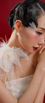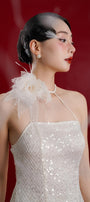 Special Features: Halter-Neck design , Asymmetric floral embellishment with feathers, High side slit