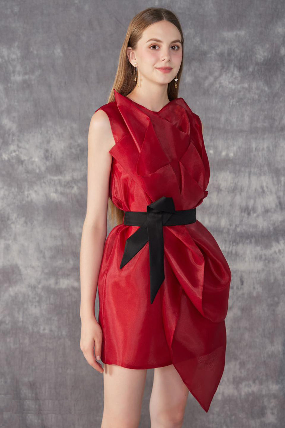 Made with high-quality organza, this dress offers a soft and lightweight feel, perfect for any occasion. Its A-line silhouette and jewel neck design provide a flattering and elegant look. Upgrade your wardrobe with this stylish and versatile dress.