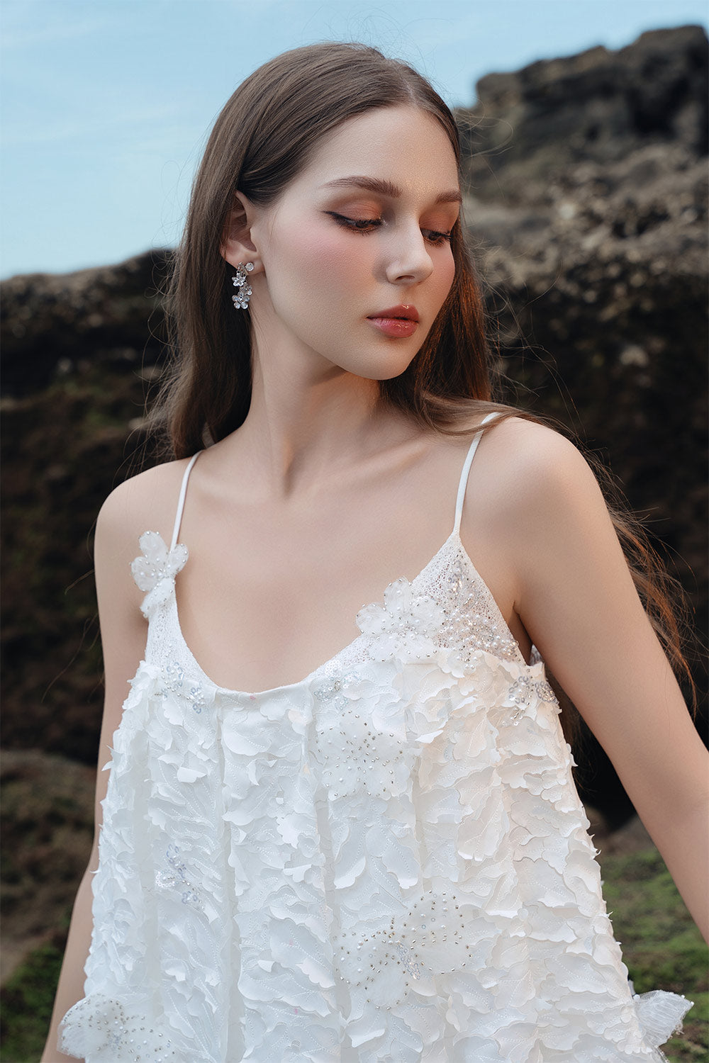 Special Features: Leaf pattern, Attached floral with beads, Box pleated