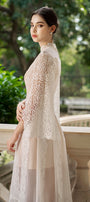 Rosie Pleated Slit Sleeved Mesh Lace Midi Dress