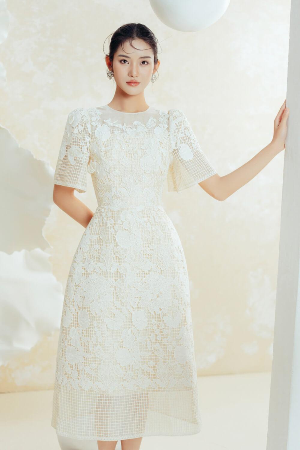 Flirty and feminine, the dress will make you look and feel gorgeous. Crafted with delicate lace and a flattering A-line style, this midi dress is perfect for any special occasion. Dress up this timeless piece with accessories for an effortless, statement look!