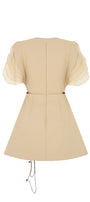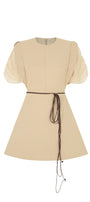 Nyra A-line Puffy Sleeved Khaki Mini Dress