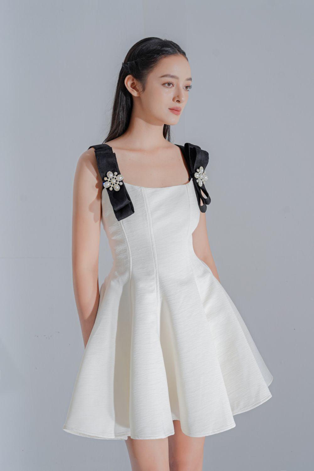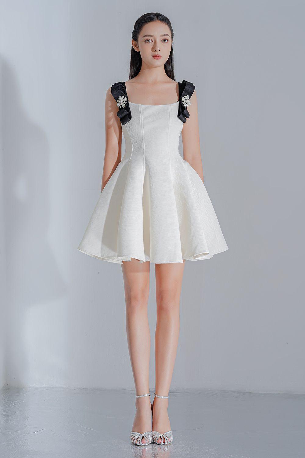 Black bows with stone, Draped bottom, Dart lines