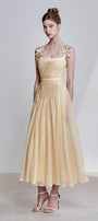 Made with luxurious silk chiffon, this dress exudes elegance and grace. The square neckline adds a touch of sophistication, while the A-line silhouette flatters all body types. Perfect for any formal event, this dress is a timeless addition to your wardrobe.