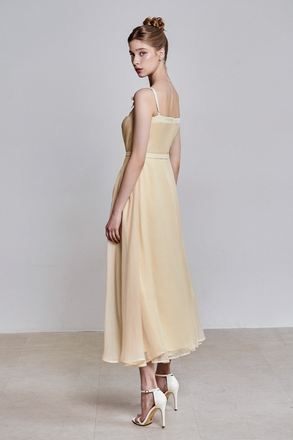 Lyra A-line Square Neck Silk Chiffon Midi Dress