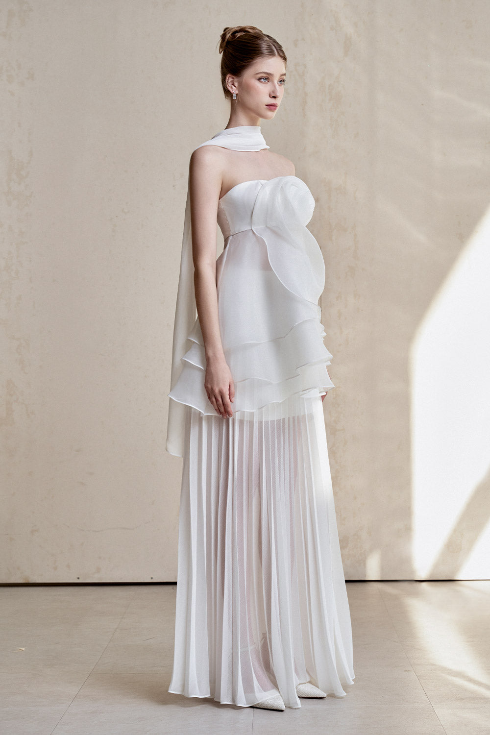 Gilda Pleated Draped Chiffon Floor Length Skirt