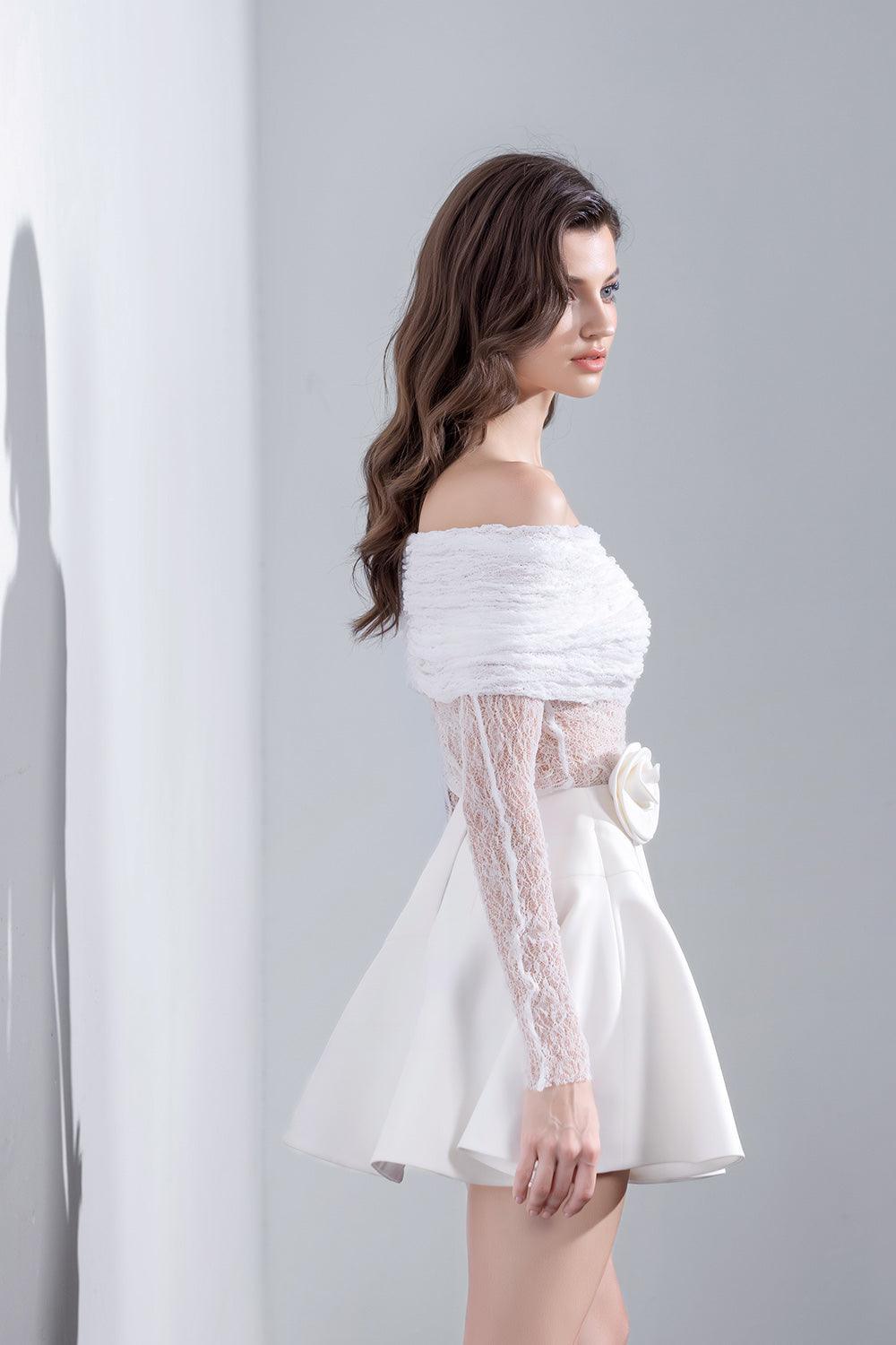 Nyla A-line Flower Applique Polycotton Mini Skirt