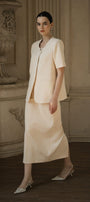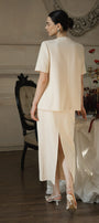 Meticulously crafted from premium twill fabric, the skirt combines sophisticated tailoring with functional design. The streamlined sheath silhouette offers a refined profile while the strategic back slit ensures ease of movement without compromising elegance. This versatile midi-length piece features precise construction details that create a polished drape, making it an essential component.