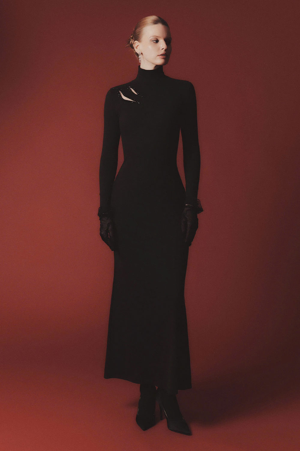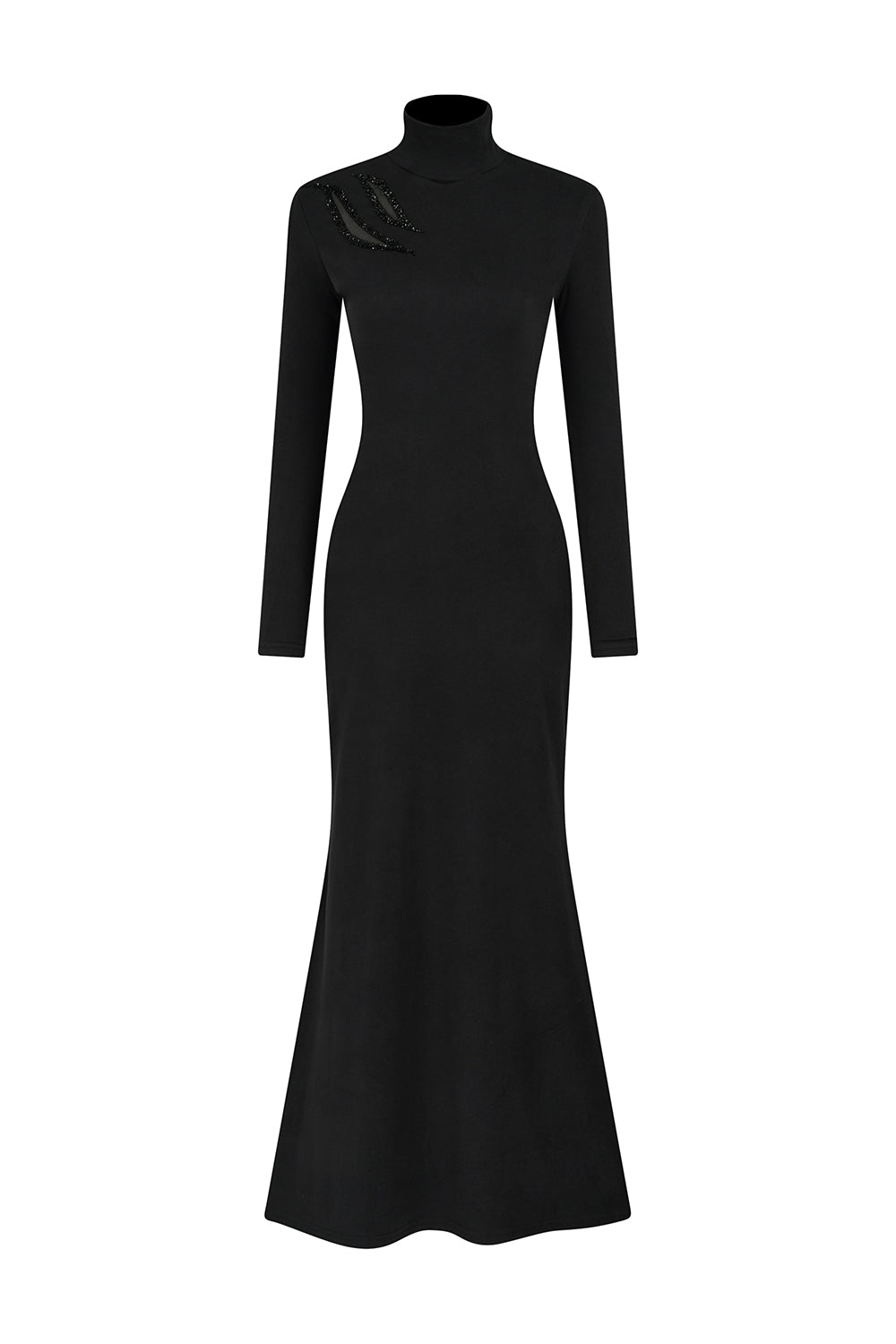 Luxe Trumpet Long Sleeved Polyester Spandex Ankle Length Dress