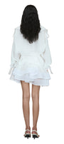 Elevate your wardrobe with this expert-crafted A-line jacket, featuring a flattering V-neck, graceful bell sleeves, and elegant ruffle embellishments. Perfect for business events, soirées, or any occasion where style and sophistication are a must.