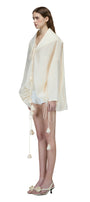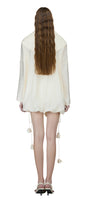 Expertly designed for elegance, this top features a flattering trapezoid silhouette, sophisticated V-neck, and draped batwing sleeves. Tassel embellishments add chic movement. Ideal for work events, dinners, or stylish daytime outings.