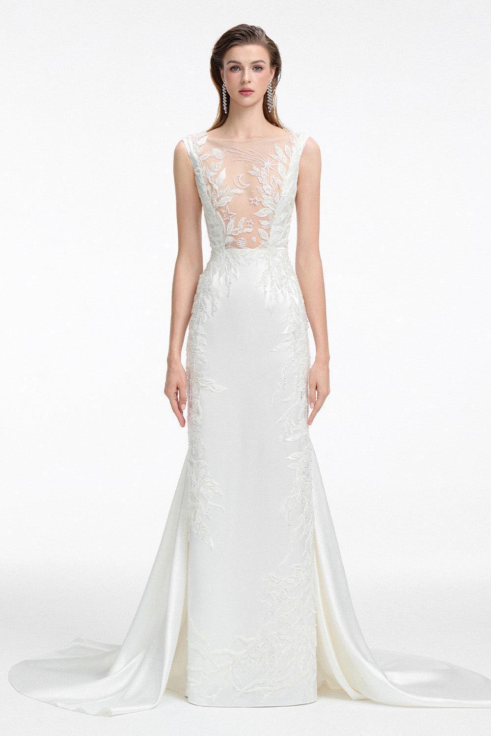 Bond Mermaid Boat Neck Silk Satin Floor Length Dress