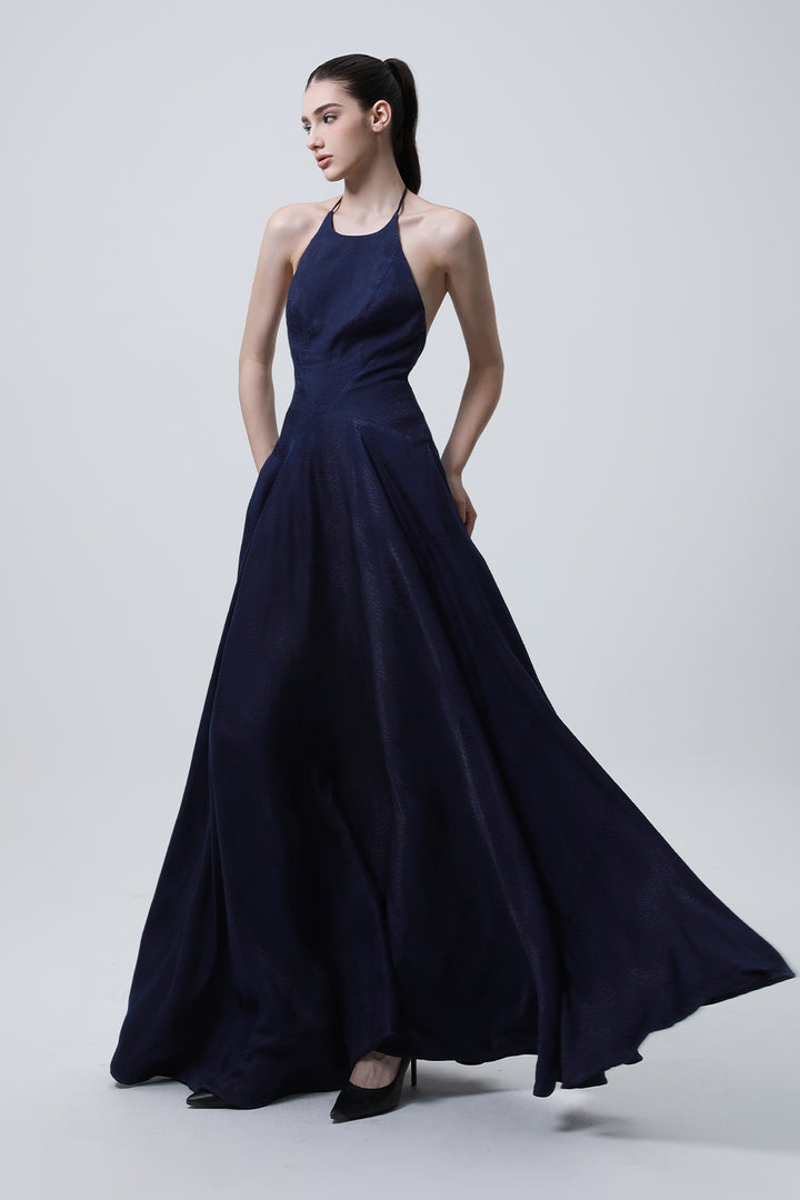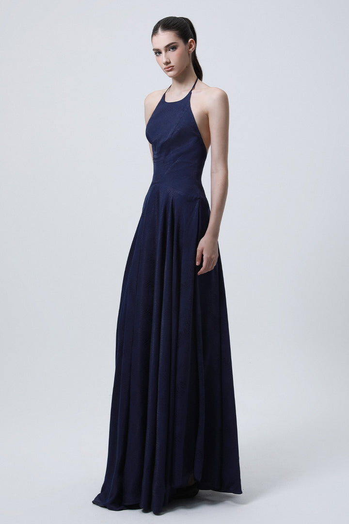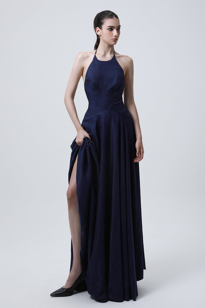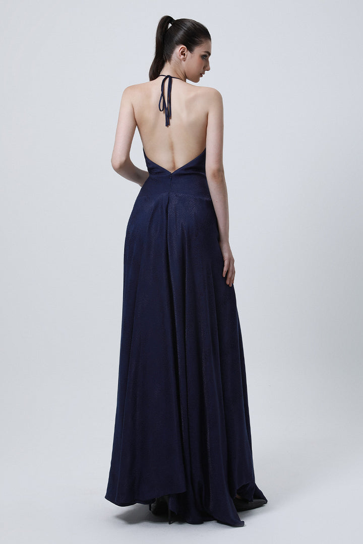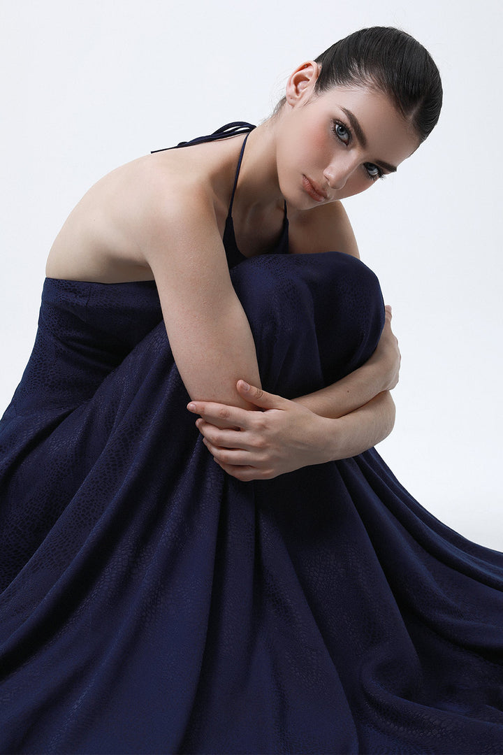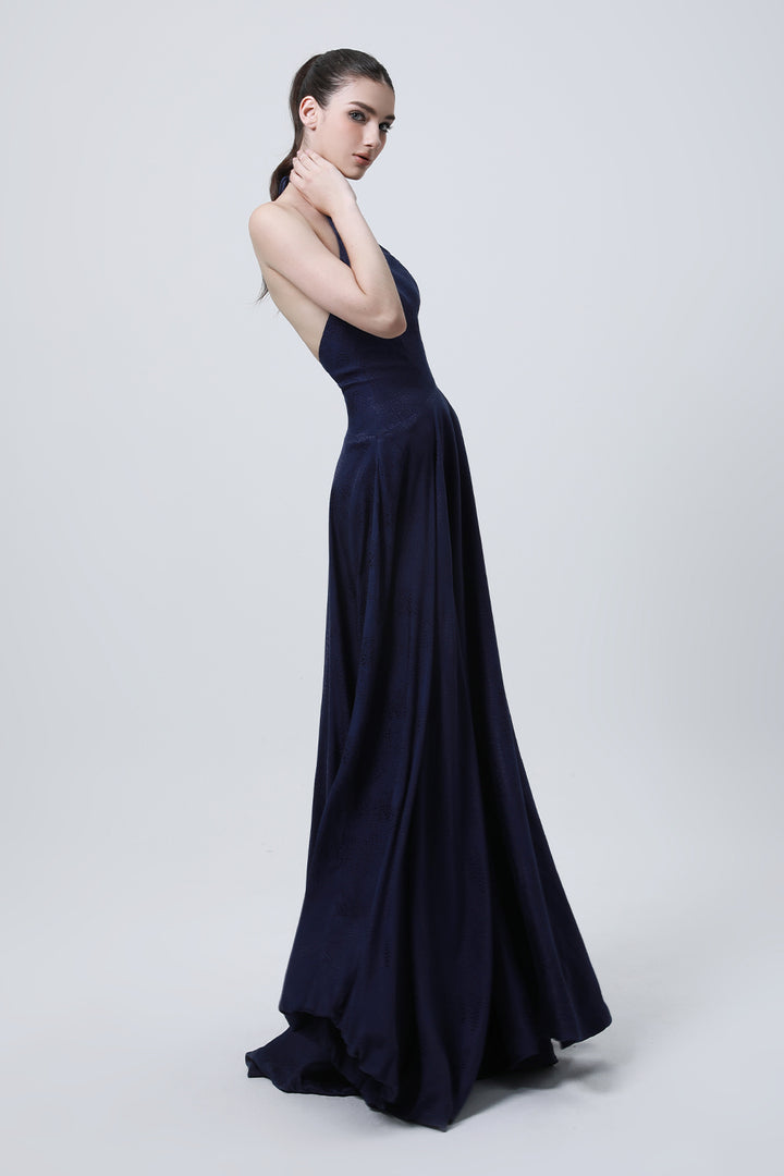 Discover the perfect blend of style and comfort with our dress. Made with luxurious silk, this floor length dress features a flattering halter neck design that accentuates your curves and provides a comfortable fit. Elevate your look and feel confident at any event.