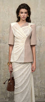 Expertly crafted, this sheath top features an asymmetric neckline and regular sleeves, accentuated by elegant draped detailing. Its sophisticated silhouette offers a polished look suitable for both professional settings and chic evening gatherings.