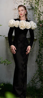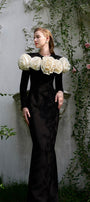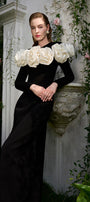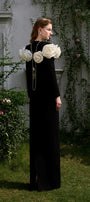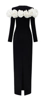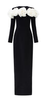 Denver Sheath Flower Applique Crepe Floor Length Dress