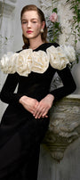 Special Features: Attached floral along the upper bust to the back, Two-color contrast, Slit back