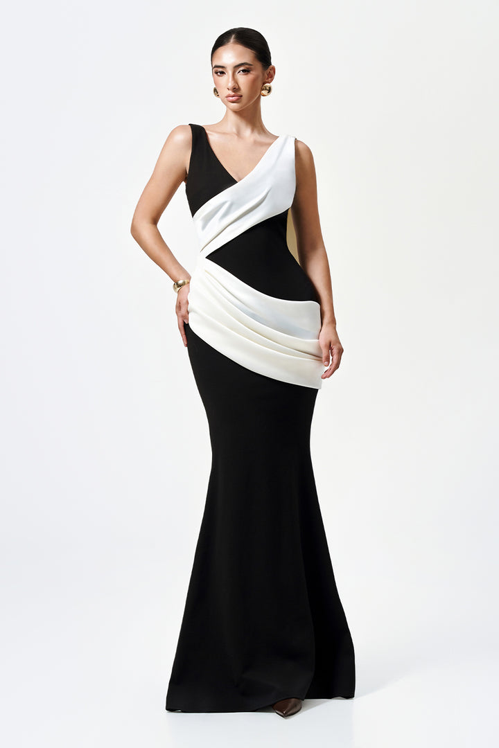 Hera Mermaid V-Neck Cotton Spandex Maxi Dress