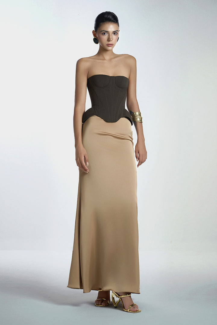 The corset offers a structured fit with precise chest support to enhance your silhouette. Crafted from crinkle crepe fabric, it combines texture and form for a sleek, modern look. This corset is designed to contour the body smoothly, providing both style and shaping benefits ideal for sophisticated layering or standalone wear.
