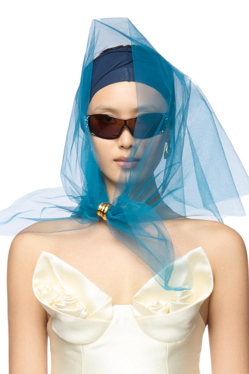 Made from delicate tulle, this scarf is perfect for both casual and formal occasions. Its intricate design and lightweight material make it a must-have accessory for any wardrobe. Elevate your style with the scarf.