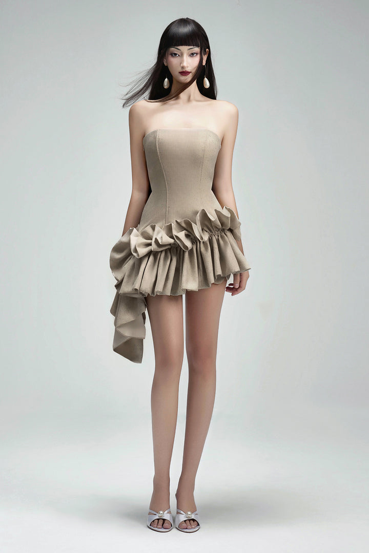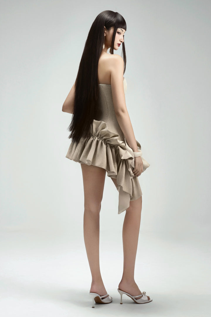 | 特殊功能 | Corset waist with boning, Asymmetric ruffle layer detail, Chest cup |