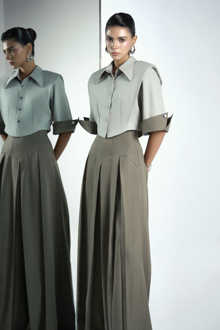 Crafted from crinkle crepe, these floor-length pants offer a distinguished silhouette with elegant draping that enhances movement and comfort. The A-line cut provides a flattering fit that balances style with ease, making these pants a sophisticated choice for both formal and contemporary wardrobes. Their textured fabric adds depth and durability, ensuring they maintain shape and refinement throughout wear.