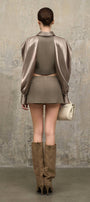 Showcase modern sophistication with this straight silhouette top, featuring a sharp collared neck, split sleeves, and expert ruched detailing. Ideal for professional settings, stylish brunches, or elevated casual outings.