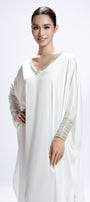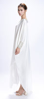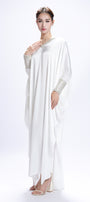 Elevate your wardrobe with this expertly crafted cocoon silhouette maxi dress, featuring a refined V-neck, cuff sleeves, and exquisite bead embellishments on luxurious synthetic silk. Perfect for formal gatherings, evening events, and sophisticated celebrations.