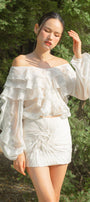 Gardenia Blouson Off-Shoulder Organza Voile Mini Set