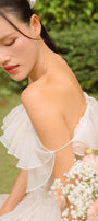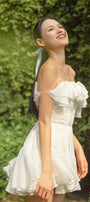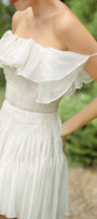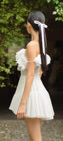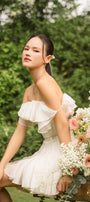 Designed to flatter your figure, this dress features a flared hem and an off-shoulder design that adds a touch of elegance. Made with lightweight organza voile, it's perfect for any occasion and sure to turn heads.