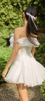 Gianni Fit and Flare Off-Shoulder Organza Voile Mini Dress