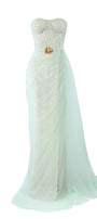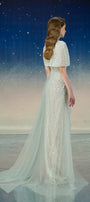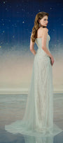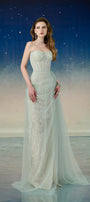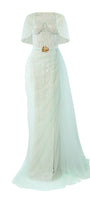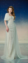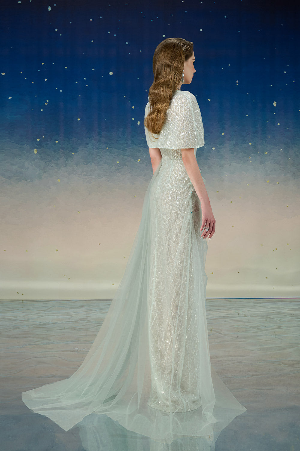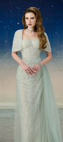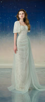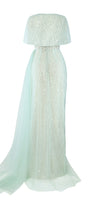 Lyrixa Asymmetric Cape Shoulder Mesh Sequin Floor Length Dress