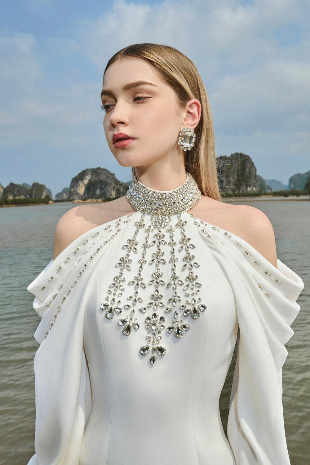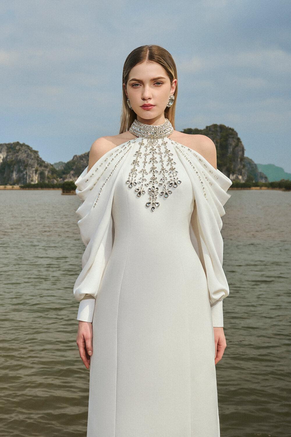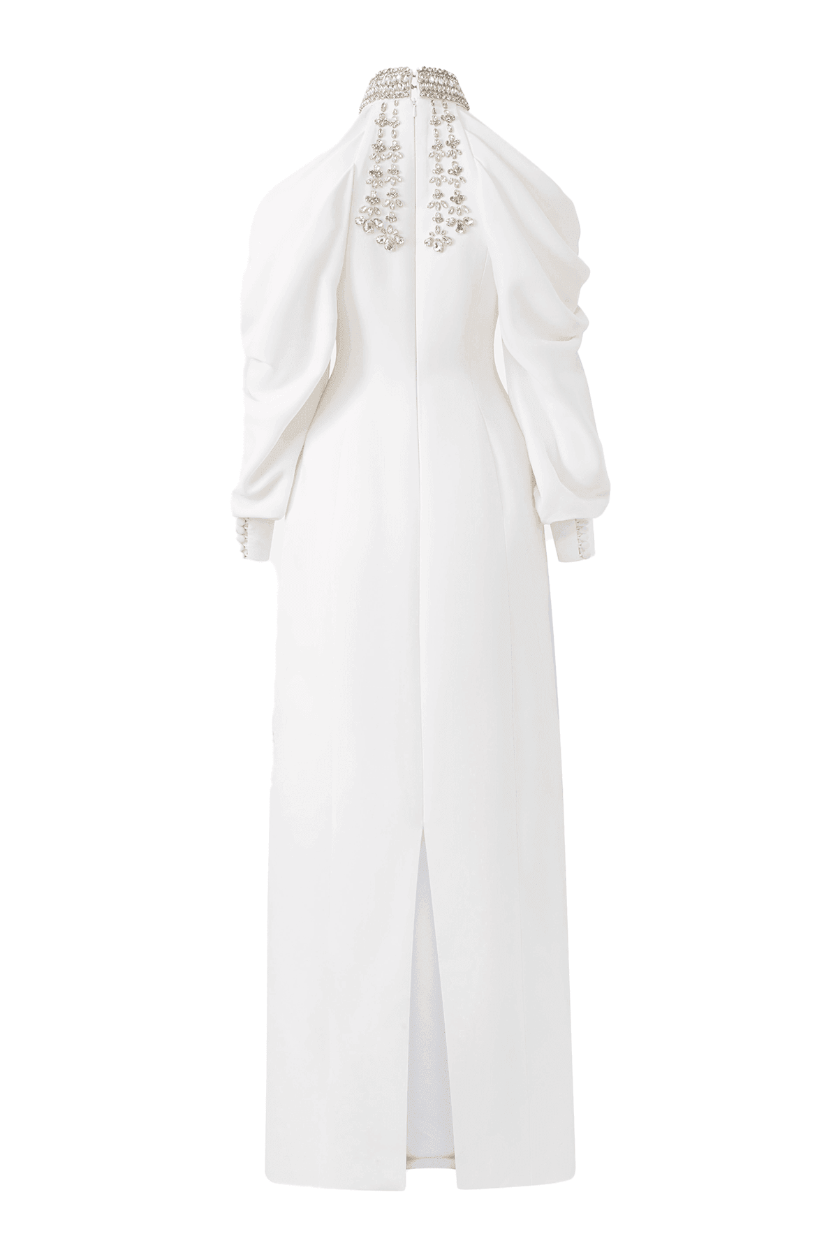 Adelina Sheath Halter Neck Satin Maxi Dress