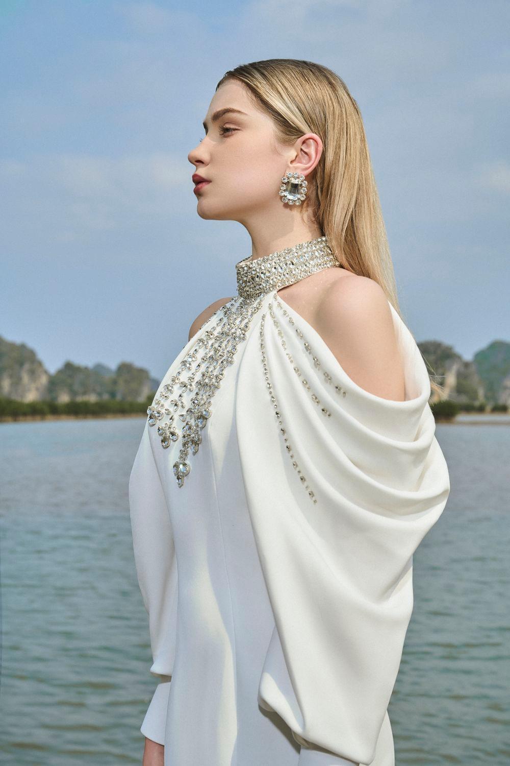 This dress elevates any special occasion. It features a luxurious satin fabric and a sheath silhouette that is designed to fit and flatter any body type. The halter neckline gives a subtle, sophisticated feel, making the dress perfect for sophisticated events.