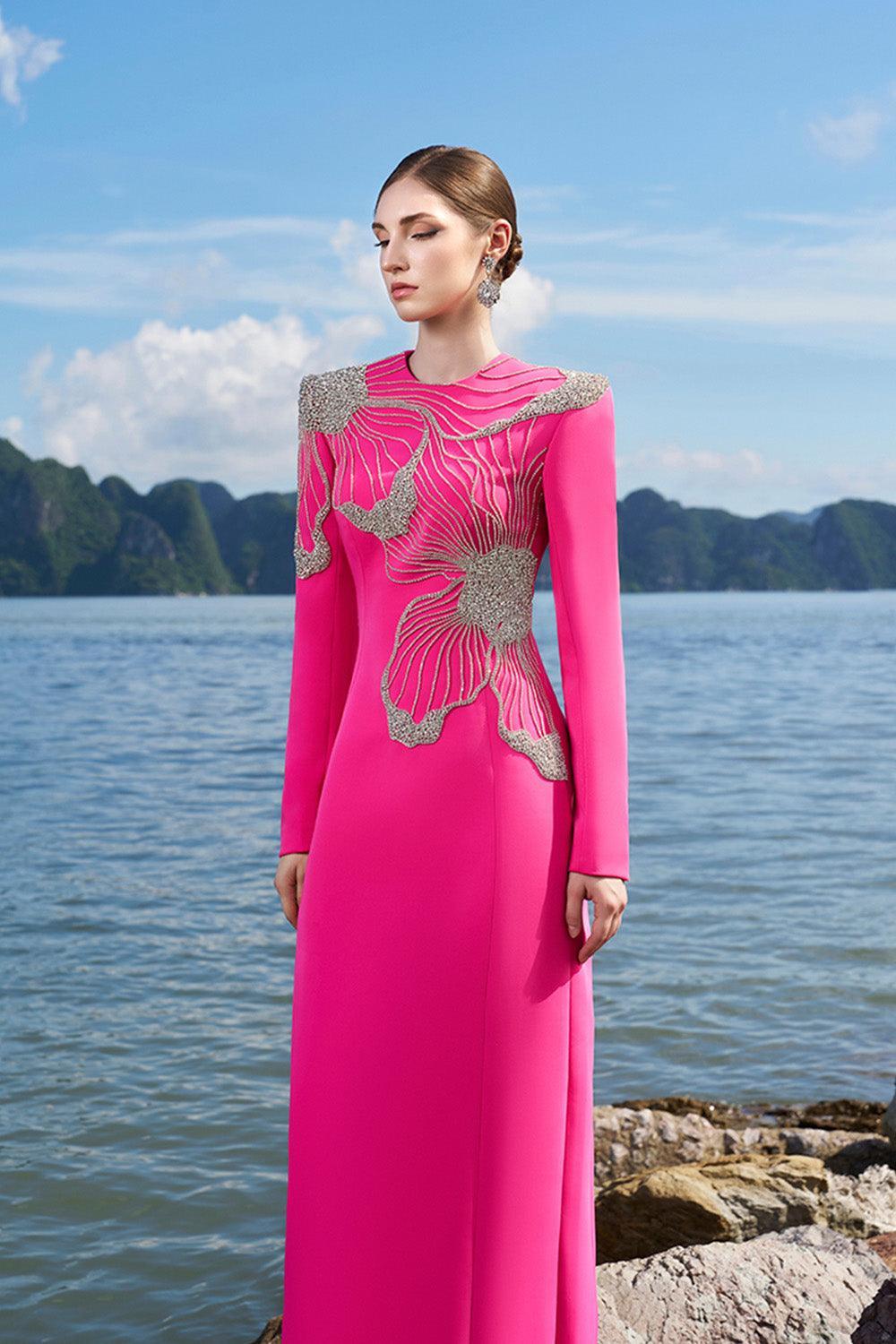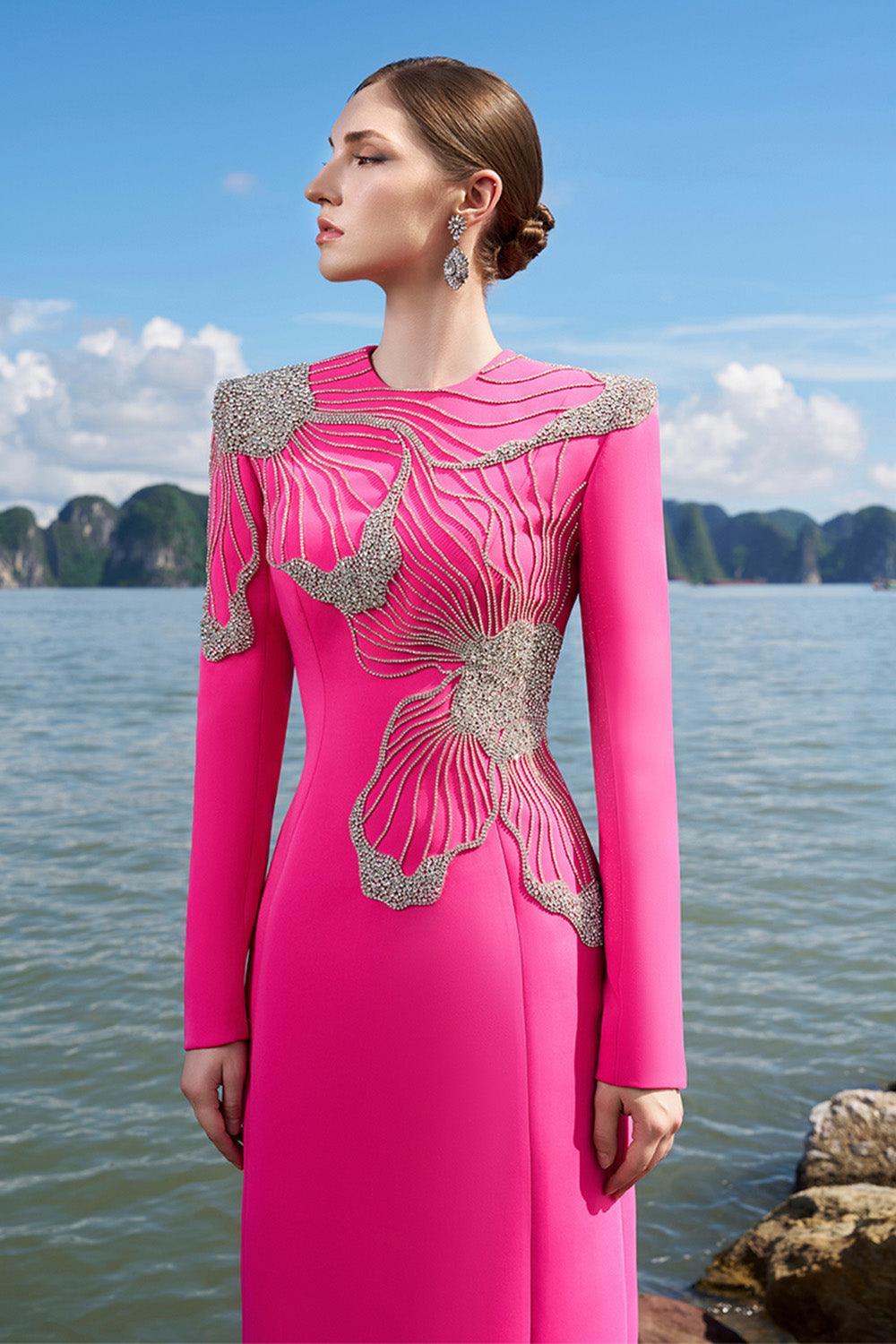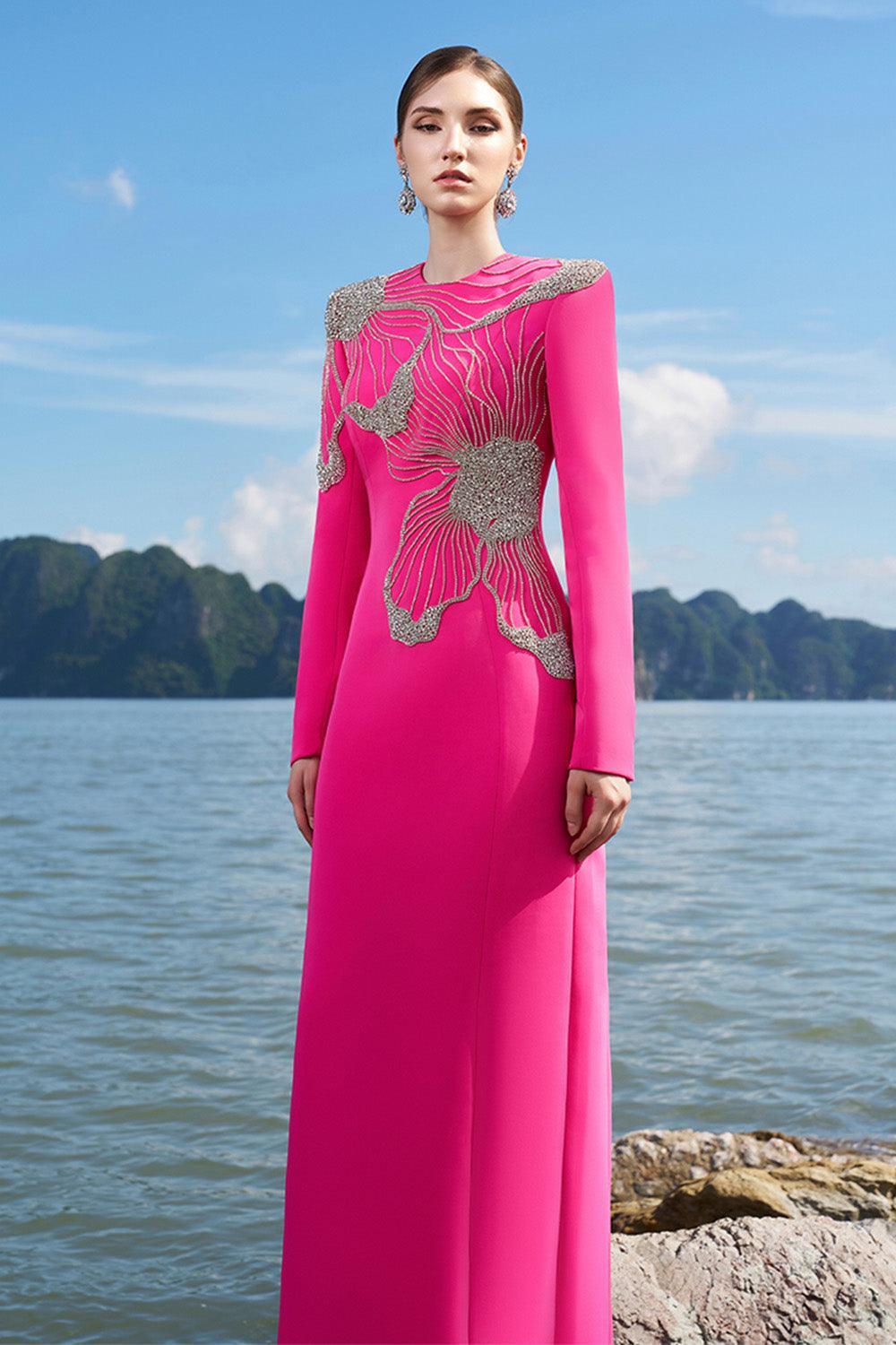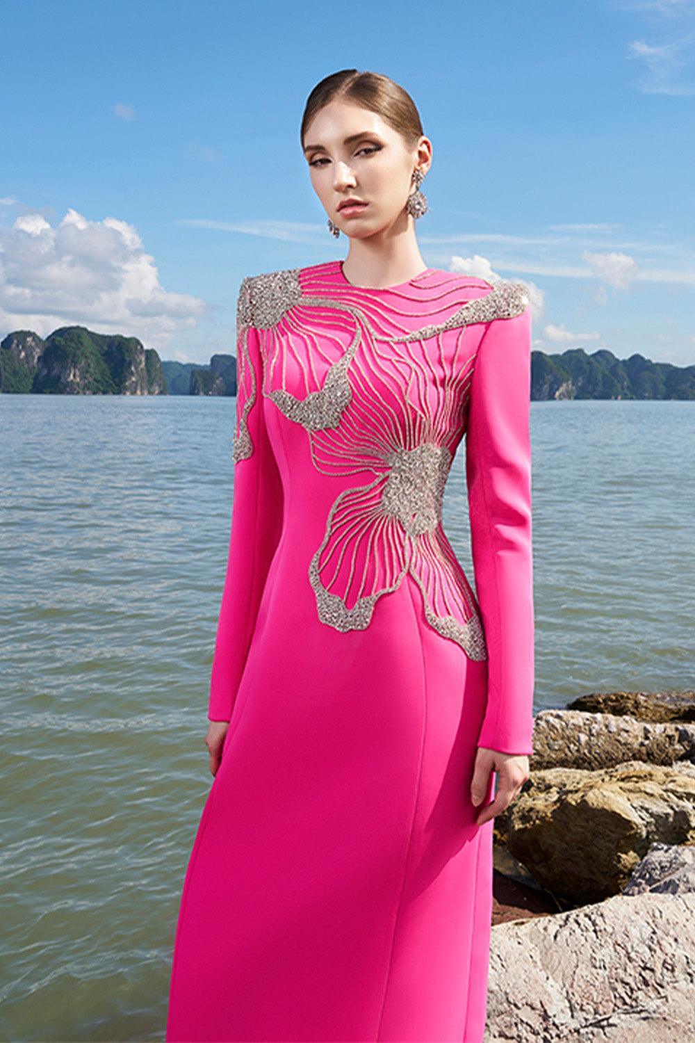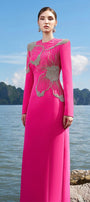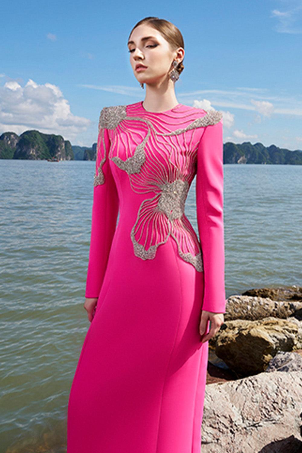 Special Features: Padded shoulder, Floral crystal embellished, Back slit