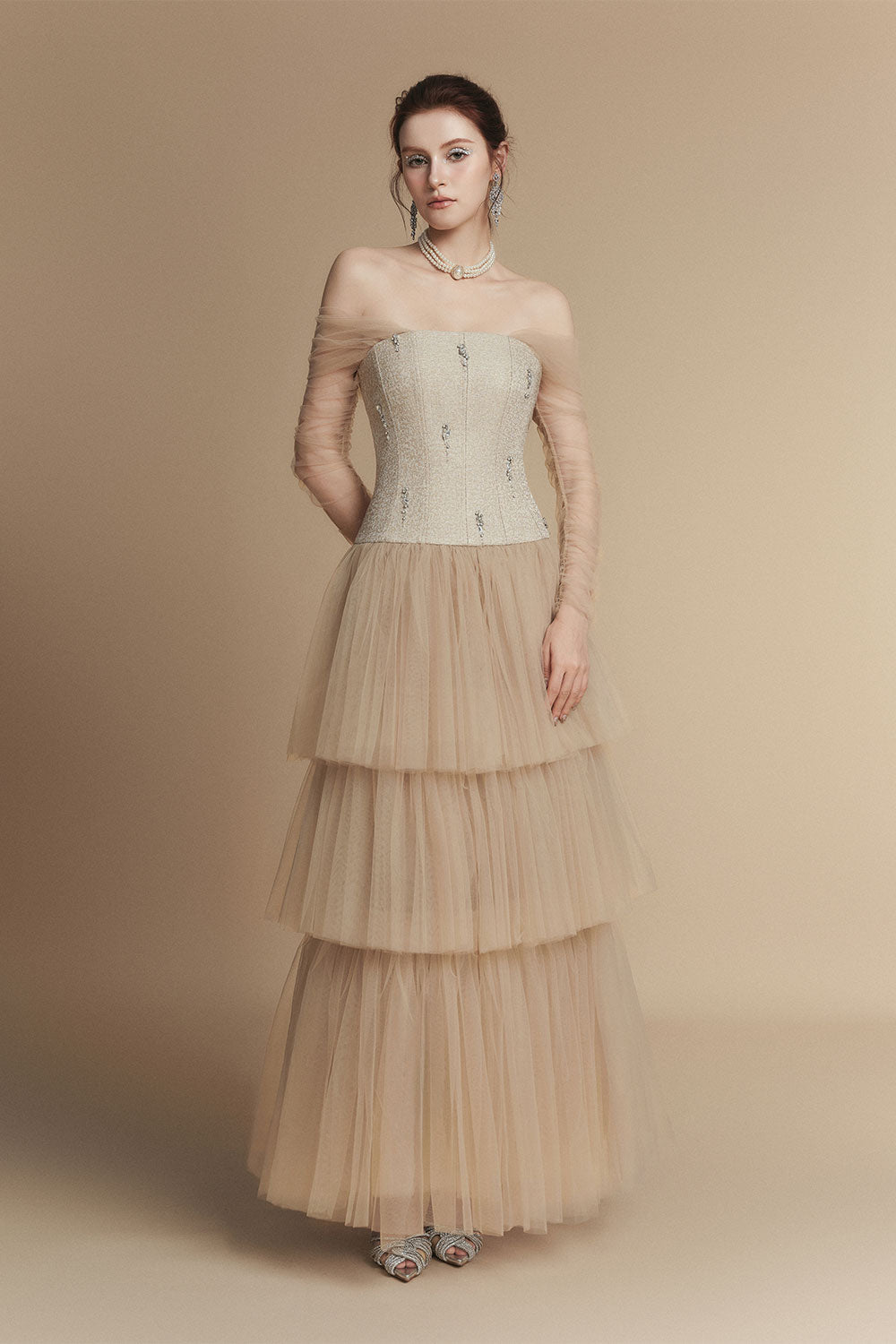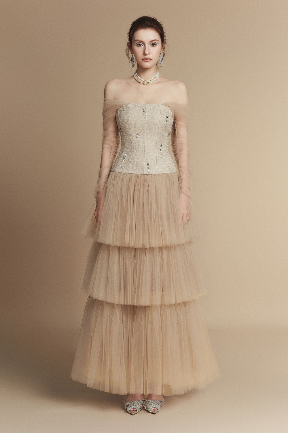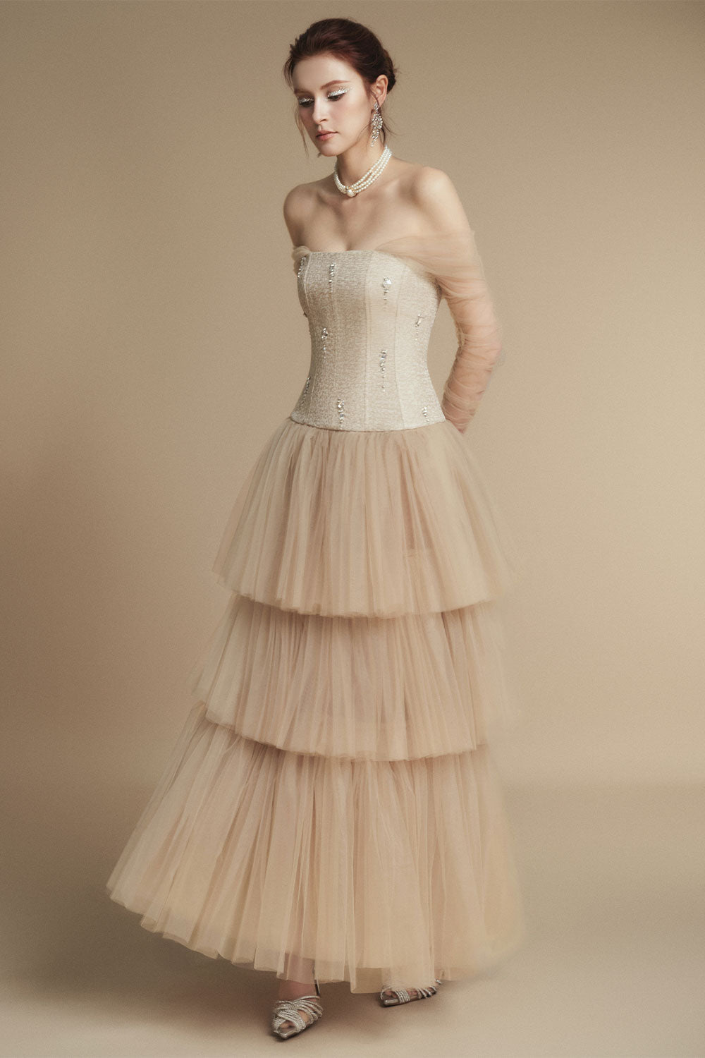 Effortlessly chic and versatile, this dress is a must-have for any wardrobe. Made from a blend of linen and rayon, it features an off-shoulder neckline and a layered design for a trendy yet sophisticated look. With an ankle length, this dress is perfect for any occasion.