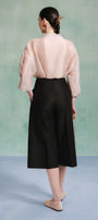 Step out boldly in the pants, crafted from sleek taffeta silk that drapes confidently just below the knee. Their wide-leg silhouette commands attention, blending luxurious texture with daring style for a standout look wherever you go. Perfect for those who refuse to blend in.