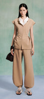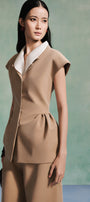 Elevate your style with the top. Its bold design features a sharp contrasting collar and a flattering peplum silhouette that commands attention. Crafted from smooth twill fabric, this top balances structure with feminine flair, perfect for making a fearless fashion statement wherever you go.