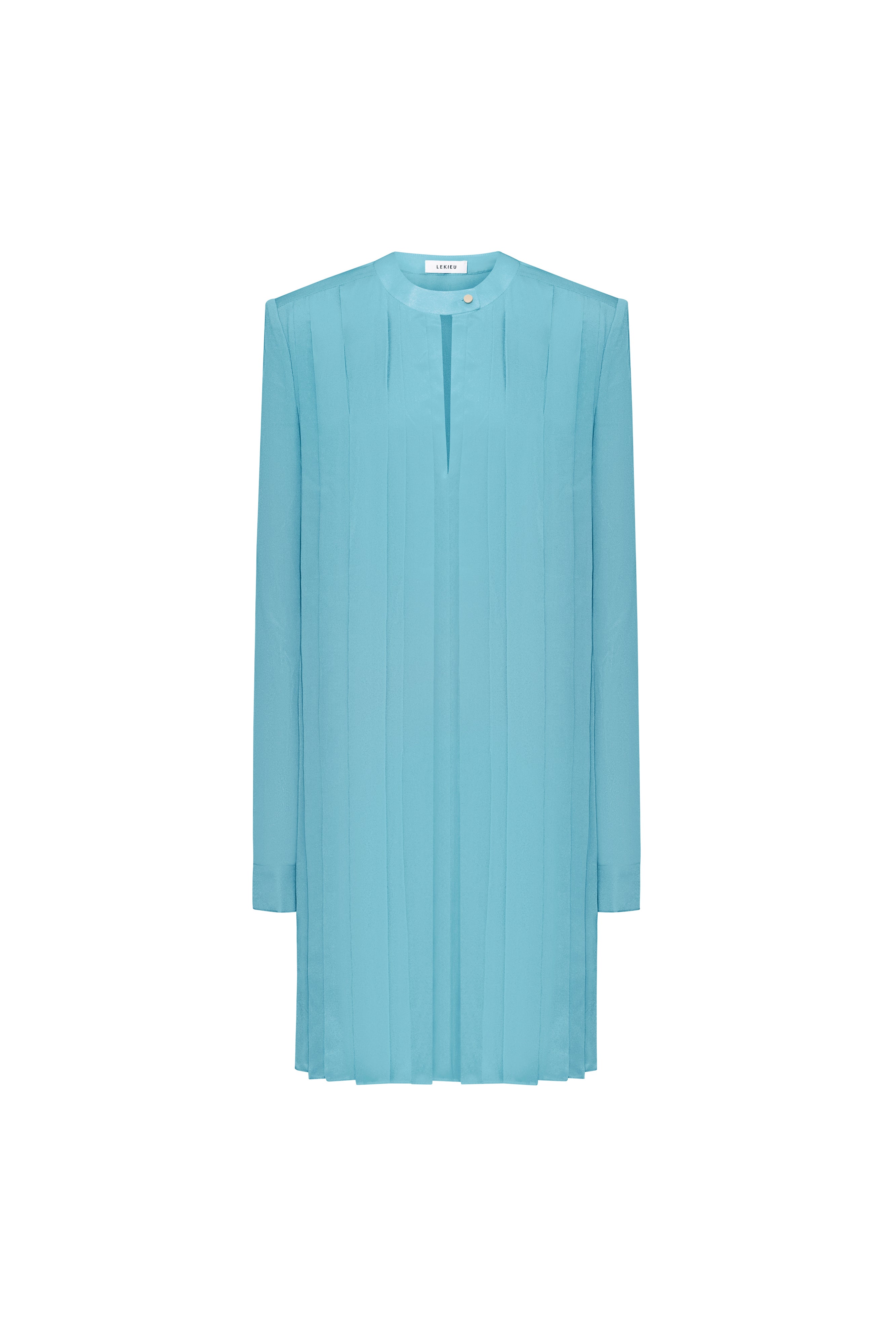 The dress exemplifies expert design with its delicate silk chiffon fabric and clean, straight silhouette. Featuring a timeless round neckline, this mini dress offers effortless elegance paired with lightweight comfort. Perfect for refined occasions, it embodies subtle sophistication and expert tailoring.