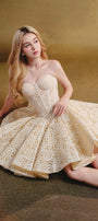 Embrace refined elegance with this A-line mini dress, featuring a romantic sweetheart neckline and exquisite lace material. Expertly crafted for both comfort and style, this dress seamlessly transitions from cocktail parties to wedding receptions or date nights.