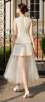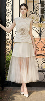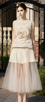 Waist dart lines, Attached 3D flower at front, Back zipper