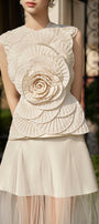 Brittany Peplum Flower Applique Chiffon Top