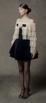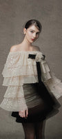 This elegant top is a must-have for any fashion-forward woman. With its layered flare sleeves and delicate tulle material, it adds a touch of sophistication to any outfit. Perfect for special occasions or a night out, this top is both stylish and versatile.