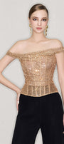 Special Features: Corset design, Stone mesh fabric creates glitter effect, Corset lacing at the back